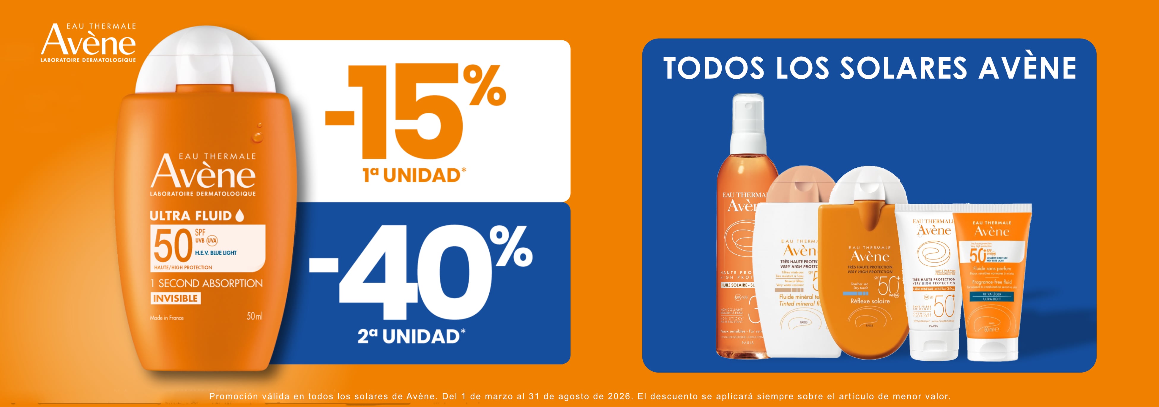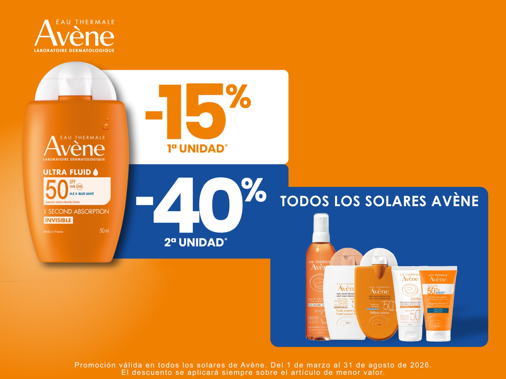 Avène Solares 1ª ud. al 15% y 2ª ud. al 40%